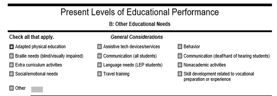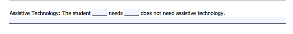 The forms associated with an IEP vary from state to state, but the wording that relates to AT will generally be a variation of the following: