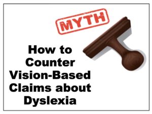 Keep this information at your fingertips, so you will be ready the next time you hear a claim about some wonderful vision-based discovery, invention, or product that purportedly cures dyslexia. When you do, take a deep breath. Get centered. Then find what you need below and respectfully share it!
