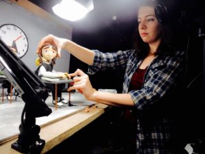 After that evaluation, she was able to have accommodations and assistive technology to help her complete her undergraduate studies. Over the course of undergraduate and graduate school, she moved from theater to costume design to puppetry and stop-motion filmmaking.